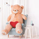 Plišani meda visine 160cm ima izvezene donje šapice u obliku srca, kao i mašnu oko vrata.